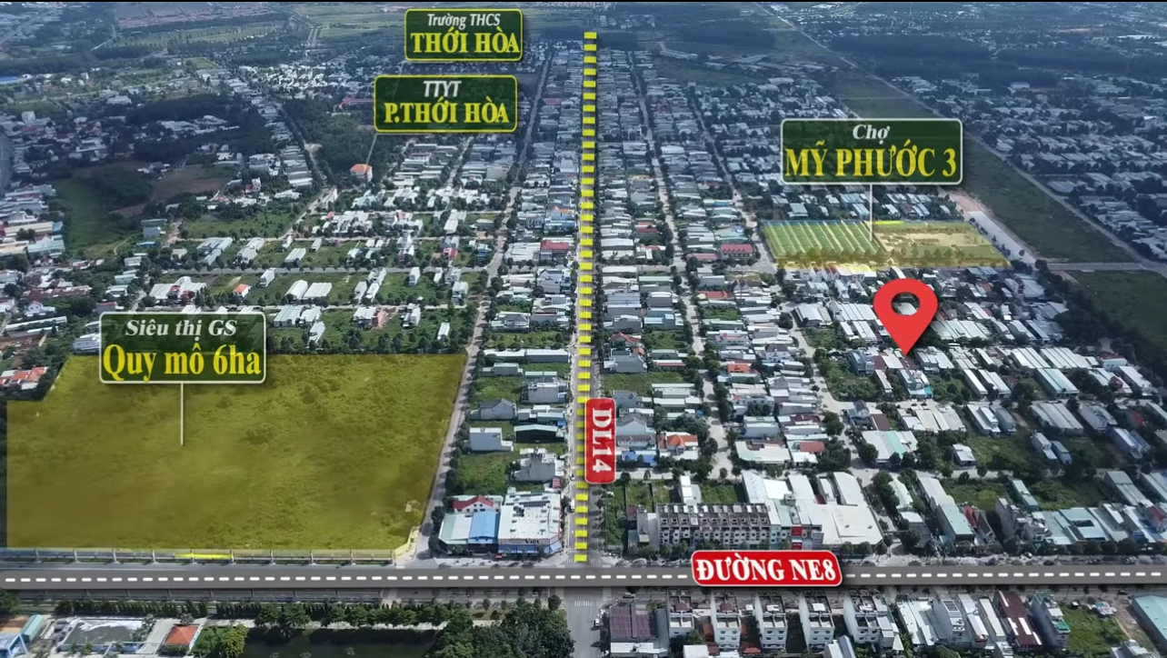 Gần chợ Mỹ Phước 3 100m, Trường học Thới Hòa 500m, trục đường chính 150m, cổng chính KĐT Mỹ Phước 3 300m