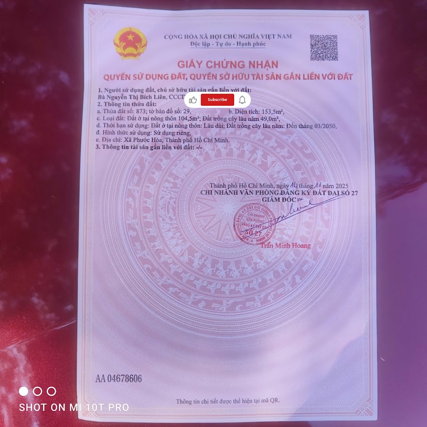 ĐẤT MT ĐƯỜNG ĐH514, GẦN KCN BỐ LÁ CHỈ 890TR, XÃ PHƯỚC HÒA, TP.HCM – SHR, CHÍNH CHỦ