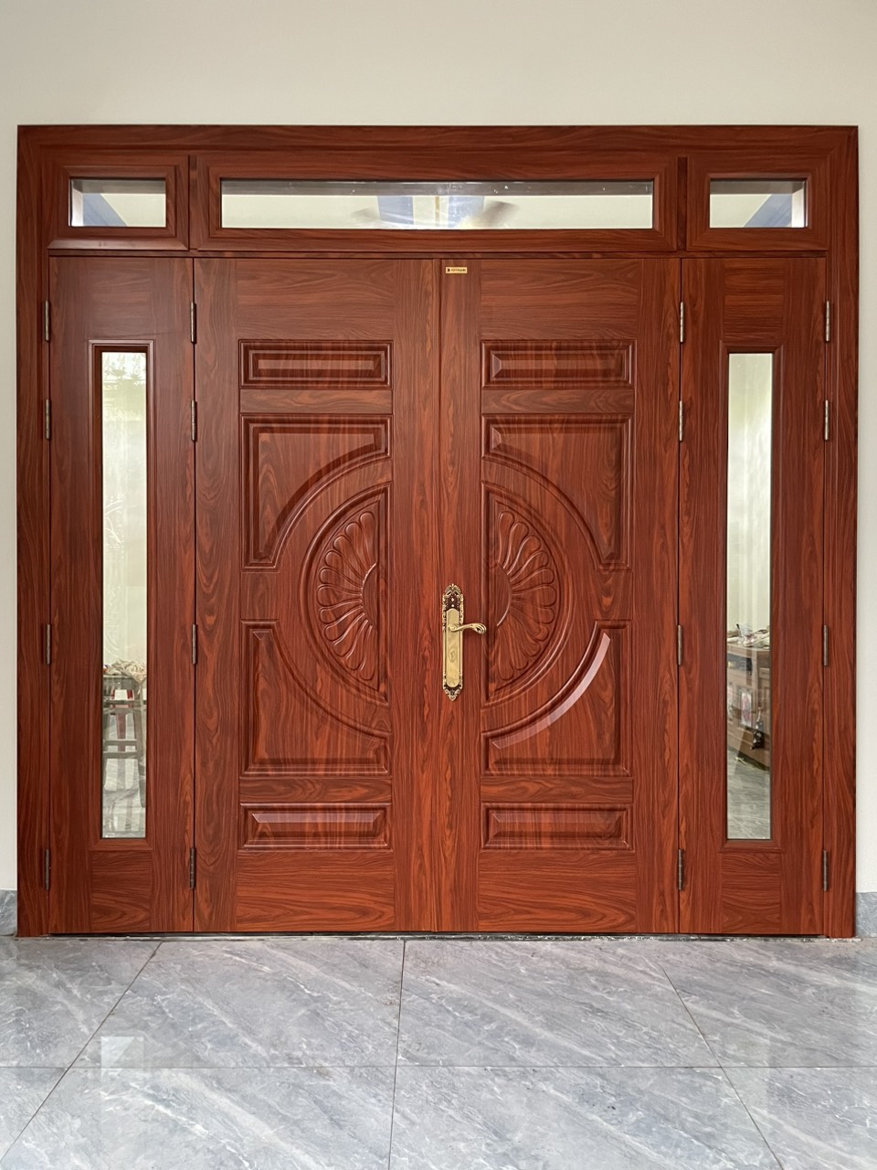 Hoàn thiện cửa thép vân gỗ 4 cánh tại Bình Thuận