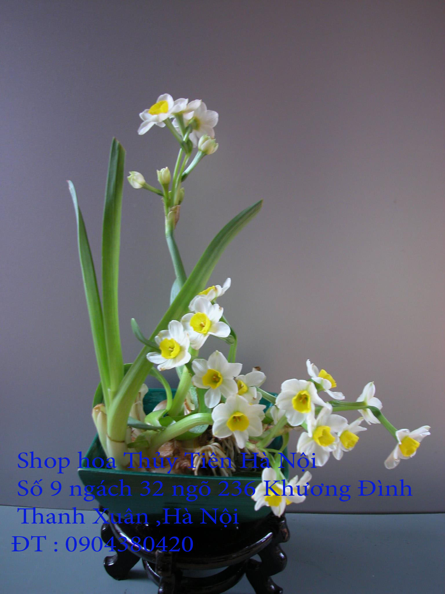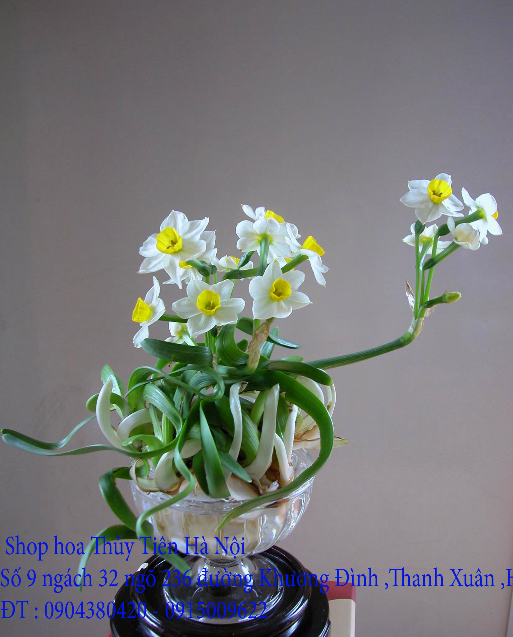Xin liên hệ theo địa chỉ : Vườn Trà Hoa Viên- SHOP HOA THỦY TIÊN HÀ NỘI ,nghệ nhân Huy Vũ , số nhà 9 ngách 32 ngõ 236 đường Khương Đình, quận Thanh Xuân, Hà Nội , điện thoại liên hệ : 0904380420 hoặc 0915009622 ( Từ cầu vượt Ngã Tư Sở và trung tâm thương mại lớn Royal City rẽ trái chỉ 400 mét là đến Vườn Trà Hoa Viên) hoặc xin mời vào facebook : ShopHoaThuỷTiênHàNội để biết thêm thông tin về hoa Thủy Tiên gọt trổ tạo dáng đẹp đón Xuân về .