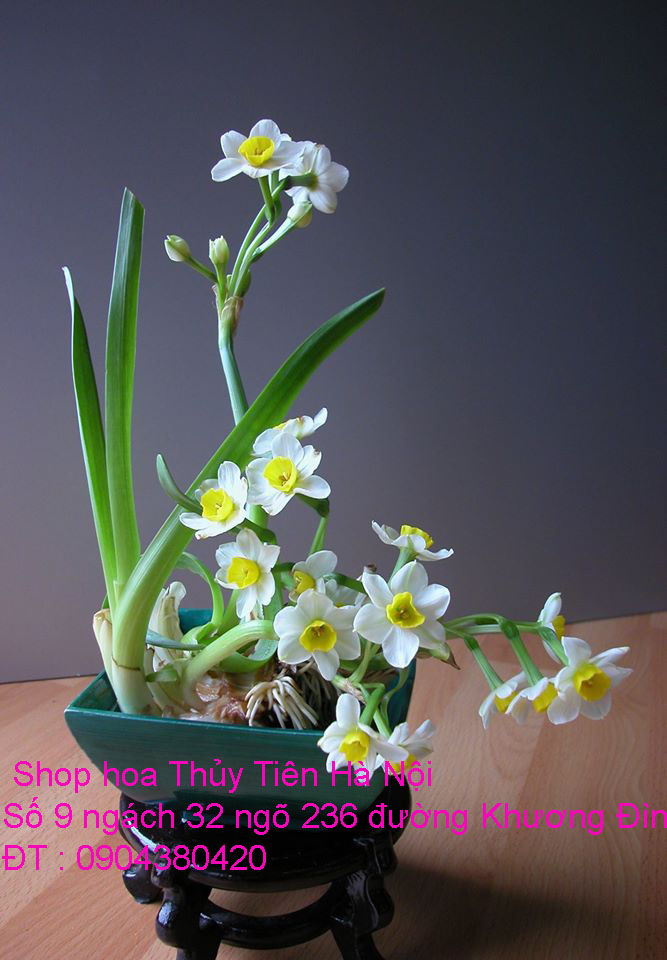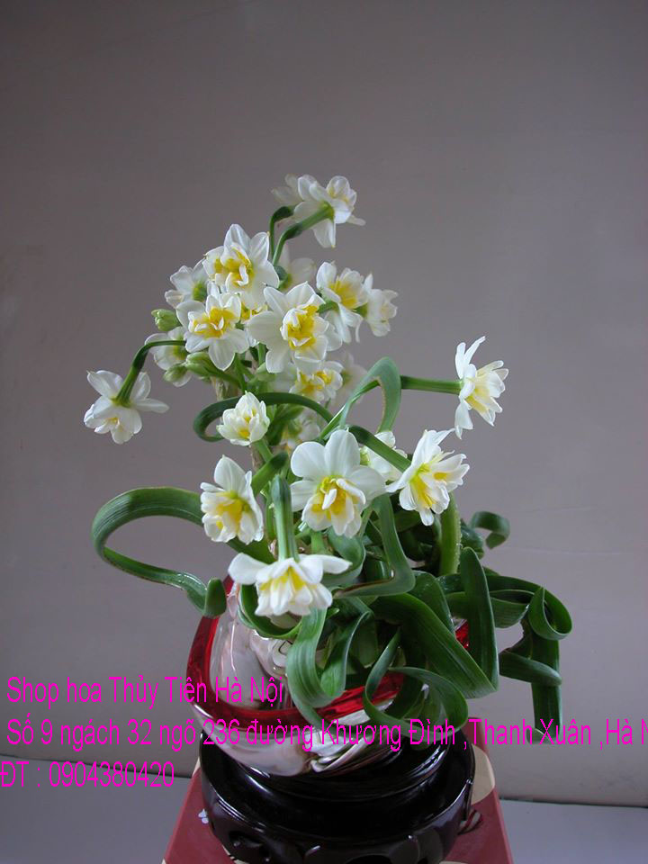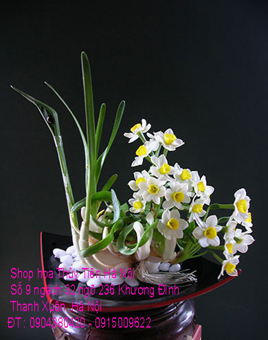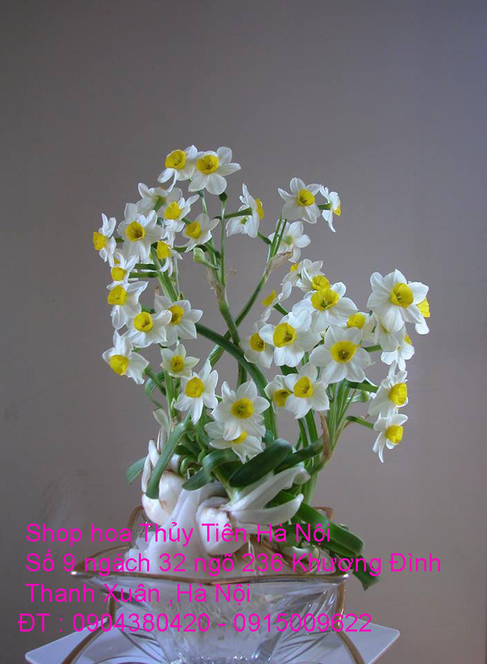 Vẫn theo thông lệ hàng năm, năm nay nhà vườn Trà Hoa Viên -SHOP HOA THỦY TIÊN HÀ NỘI chúng tôi có cung cấp hoa Thuỷ Tiên và bình hoa Thủy Tiên thành phẩm được gọt tỉa cầu kỳ ,nghệ thuật , tạo dáng Bonsai để hoa nở đẹp nhất vào đúng dịp Tết - một loài hoa mà có hội đủ 5 thứ đẹp : Rễ, thân, dáng, lá , hoa và đặc biệt hoa Thủy Tiên có hương thơm ngát, quyến rũ, chỉ một bình Thủy Tiên đặt trong nhà thôi nhưng hương thơm của hoa sẽ lan tỏa và sẽ thơm suốt ba ngày Tết cổ truyền của dân tộc .