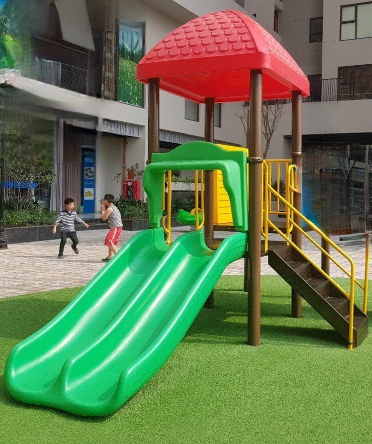 -gồm bộ cầu trượt liên hoàn với xích đu và trò chơi ném bóng rổ