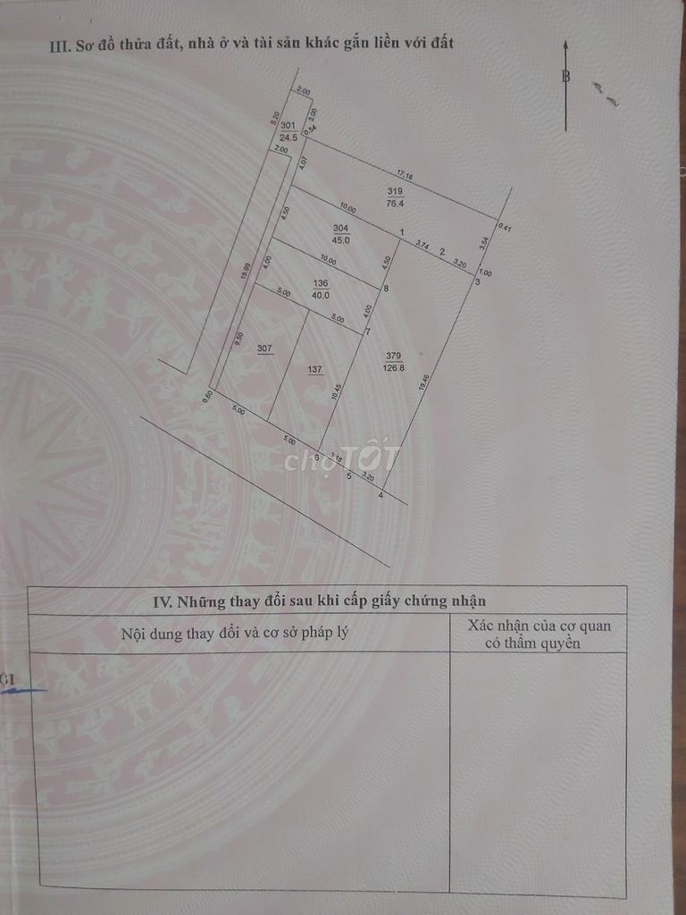 Diện tích 126,8 m2, 2 mặt tiền, mặt chính đường bê tông nhựa 5m thông các ngả, mặt bên đường bê tông 2,5m.