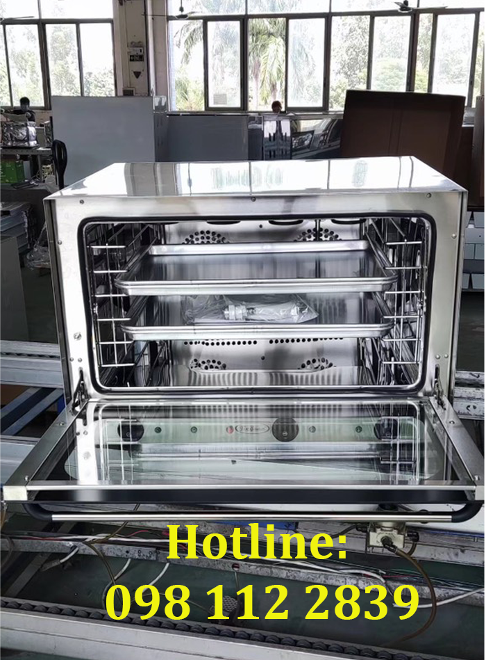 Nhiệt đối lưu toả đều giúp bánh nướng 4 khay chín đều.