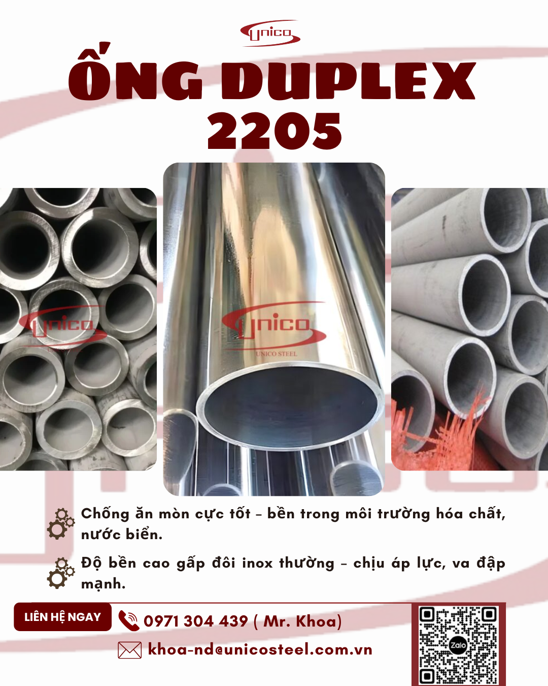 UNICO STEEL chuyên cung cấp ống Duplex 2205 – CO–CQ đầy đủ, cắt theo yêu cầu, giao nhanh toàn quốc.