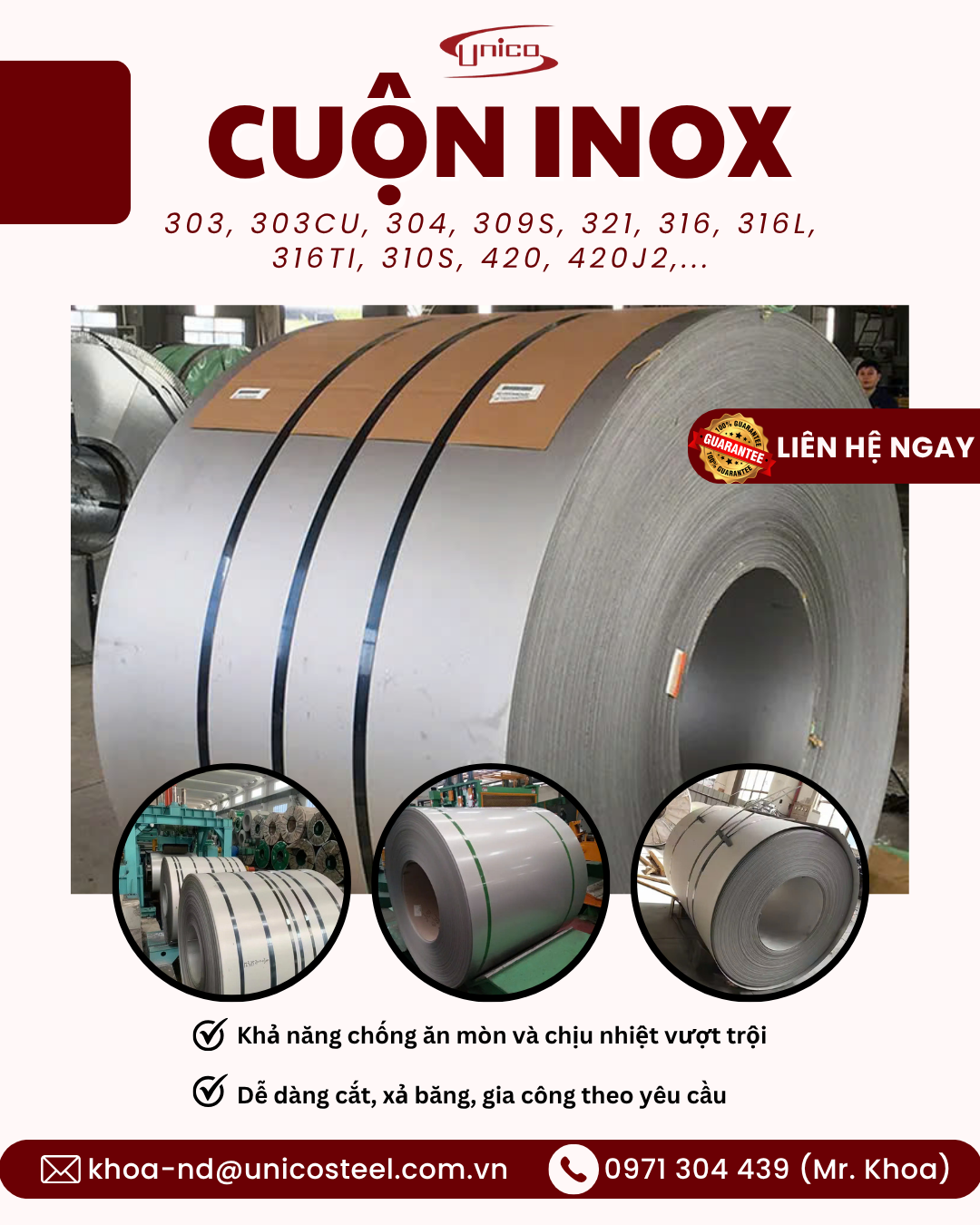 UNICO STEEL – CUỘN INOX ĐA DẠNG MÁC, CHUẨN CHẤT LƯỢNG – GIÁ TỐT HẾT Ý!