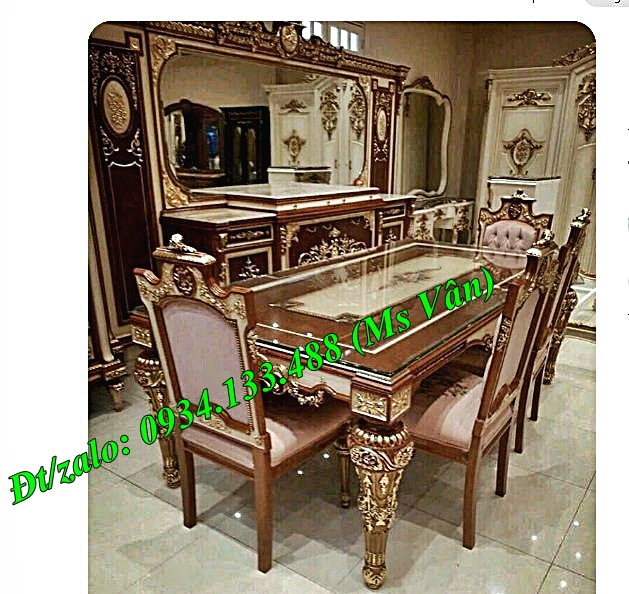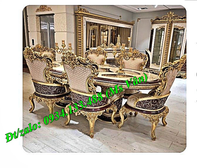 Điểm khác biệt dễ nhận thấy nhất là bàn ăn tân cổ điển có nhiều chi tiết chạm khắc tinh xảo, tỉ mỉ, hoa văn bắt mắt. Bàn ăn cổ điển là một sự lựa chọn hàng đầu cho những gia chủ yêu thích phong cách vua chúa sang trọng quý tộc lộng lẫy này.