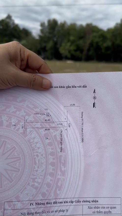 DT: 199,7m² (ngang 5m x dài 40m) đất ở XD ngay